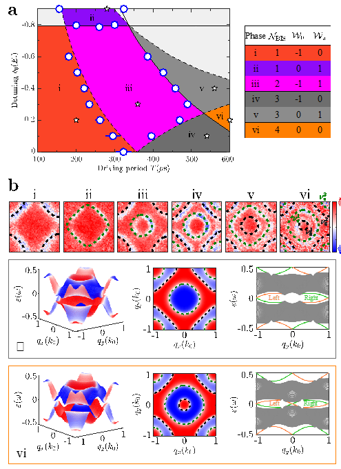 图2. Floquet拓扑相的相图及能带翻转面的特征构型。