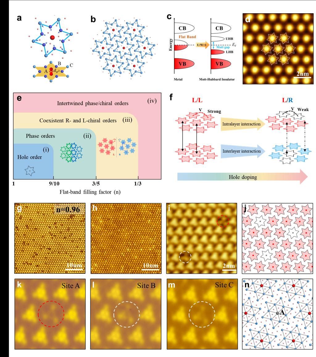 近日,熊猫体育 程志海课题组、季威课题组以及湖南师范大学周伟昌课题组等展开合作,利用扫描隧道显微技术(STM),详细研究了电荷掺杂对1T-TaS2平带中填充依赖的电子和原子有序态的精细调控机制。研究团队不仅观察到了电子空位、相位畴、手性畴以及交织的相位畴和手性畴等多种电子态的演化,还进一步发现了手性畴界处的环状团簇以及层间手性堆叠导致的向列相电子态等。该研究不仅加深了对该体系平带填充依赖的电子/...