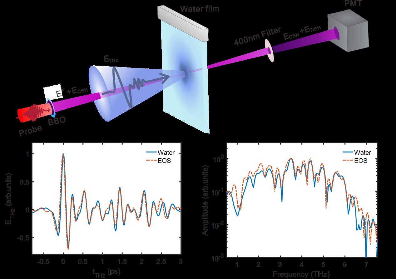 由于液体(尤其是液态水)对太赫兹波的强吸收,以液体为介质的太赫兹波产生和探测长期以来被认为是无法实现的。2017年报道了强激光激发水能够产生太赫兹波,但是其产生机制并不清晰,无法应用其逆过程对太赫兹波进行探测。近日,中国人民大学王伟民教授、北京理工大学赵跃进教授和首都师范大学张亮亮教授联合团队提出通过四波混频的物理机制,首次实现了基于液态水对宽带太赫兹波的相干探测。实验中将fs强激光和宽带太赫兹波....